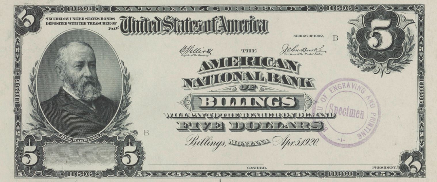 Large size plates made for this bank, but no notes issued. Proof shown here