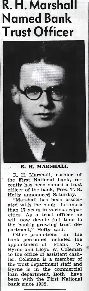 | Bank Officer Name: | R. H. Marshall | |||