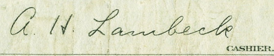 | Bank Officer Name: | A. H. Lambeck | |||