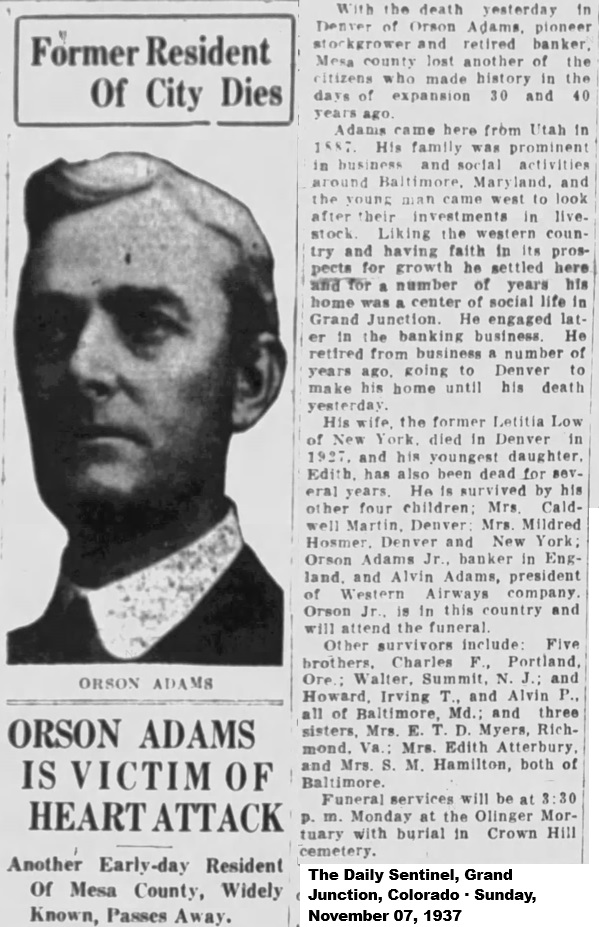 Son of Banker Orson Adams; son banker