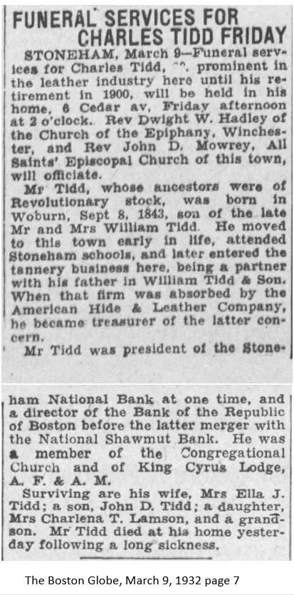 Stoneham, MA (and buried there)
