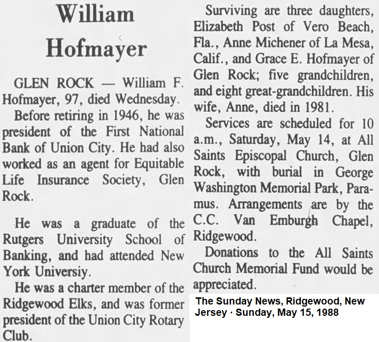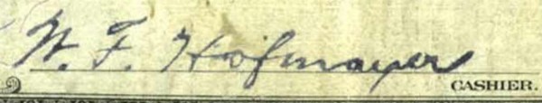 | Bank Officer Name: | W. F. Hofmayer | |||