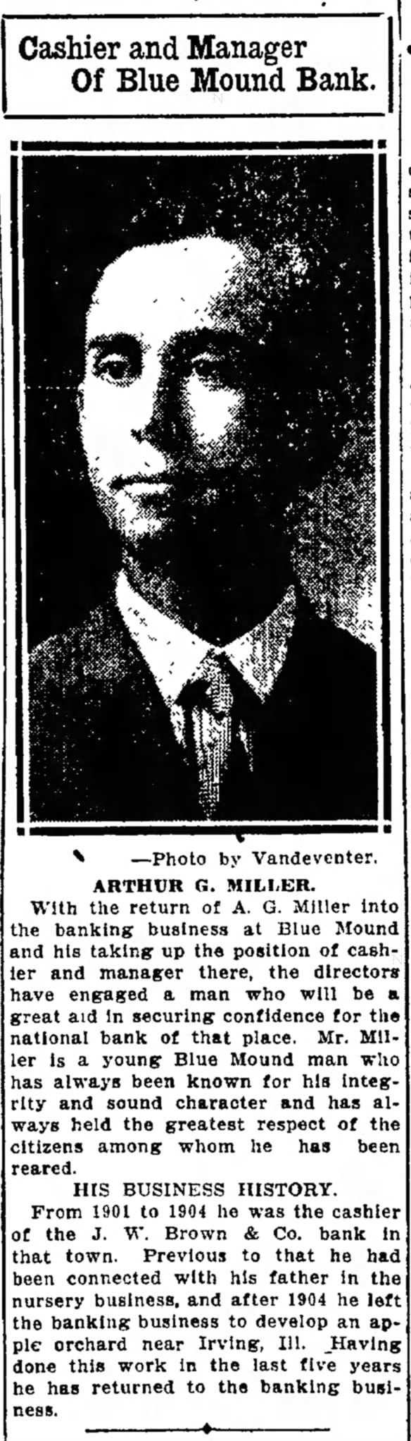 Tuscola, IL, to work at a bank there