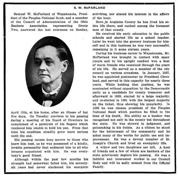 | Bank Officer Name: | S. W. McFarland | |||