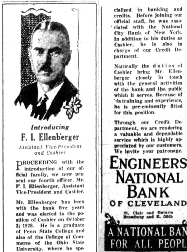 | Bank Officer Name: | F. I. Ellenberger | |||