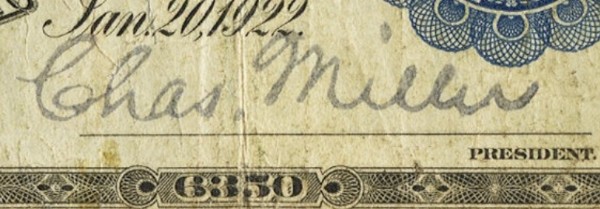 cashier of the bank when Charles Miller