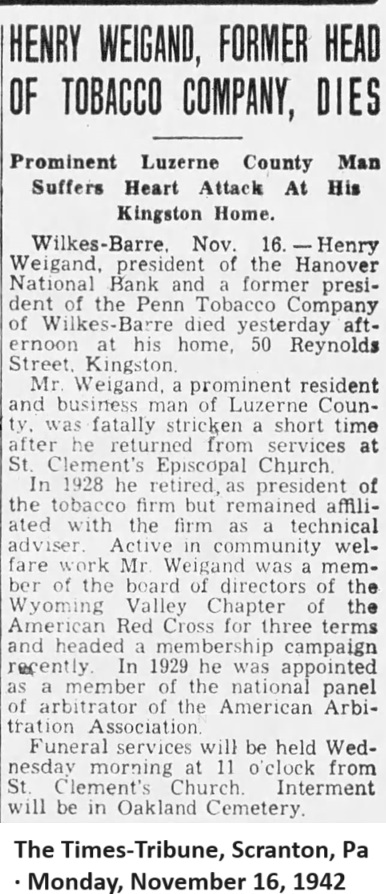 Barre, pres. 1935; Pres. Penn Tobacco Co